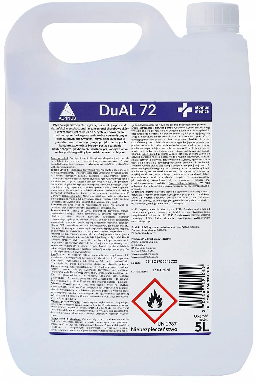ALPINUS Płyn do dezynfekcji powierzchni i rąk DUAL72