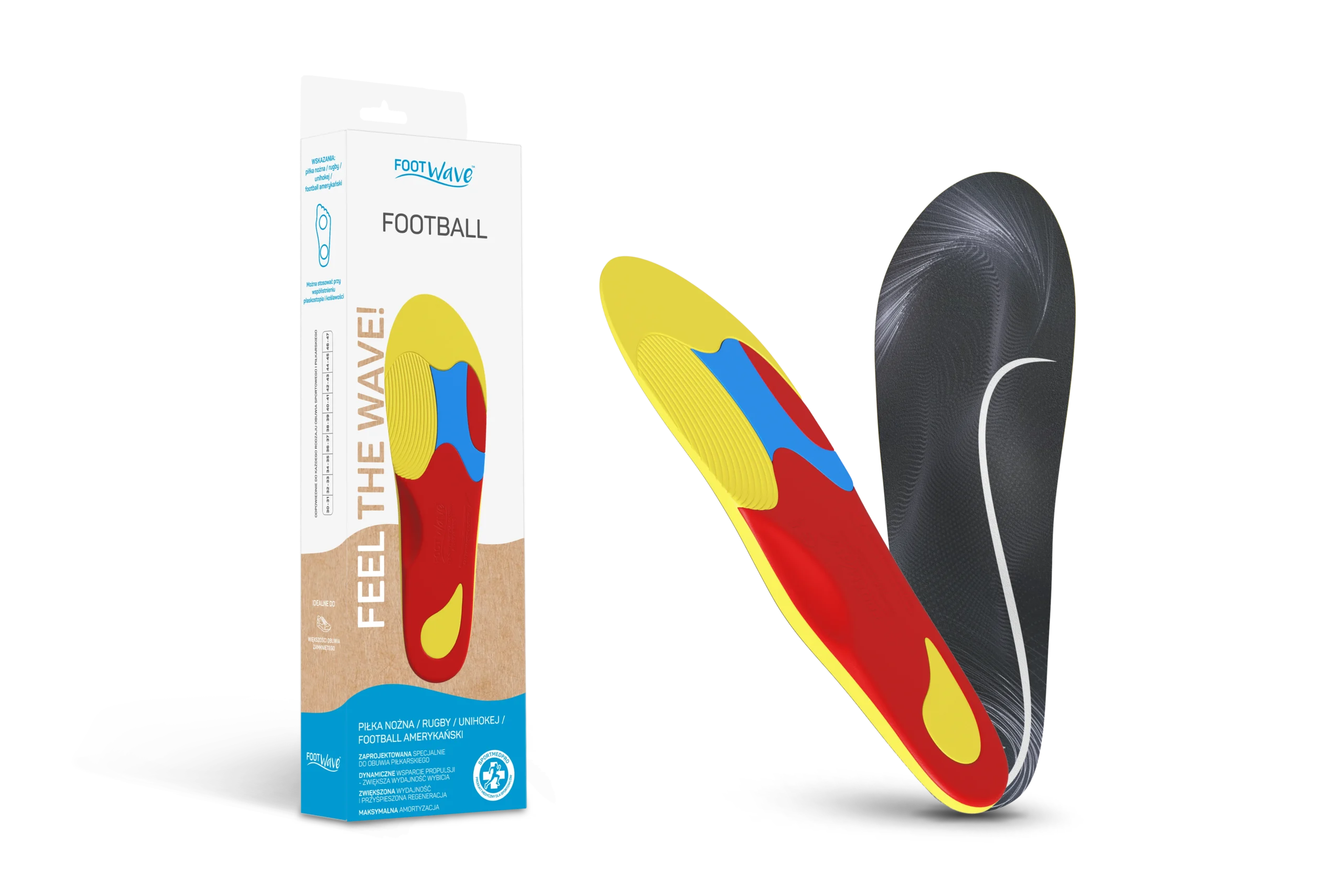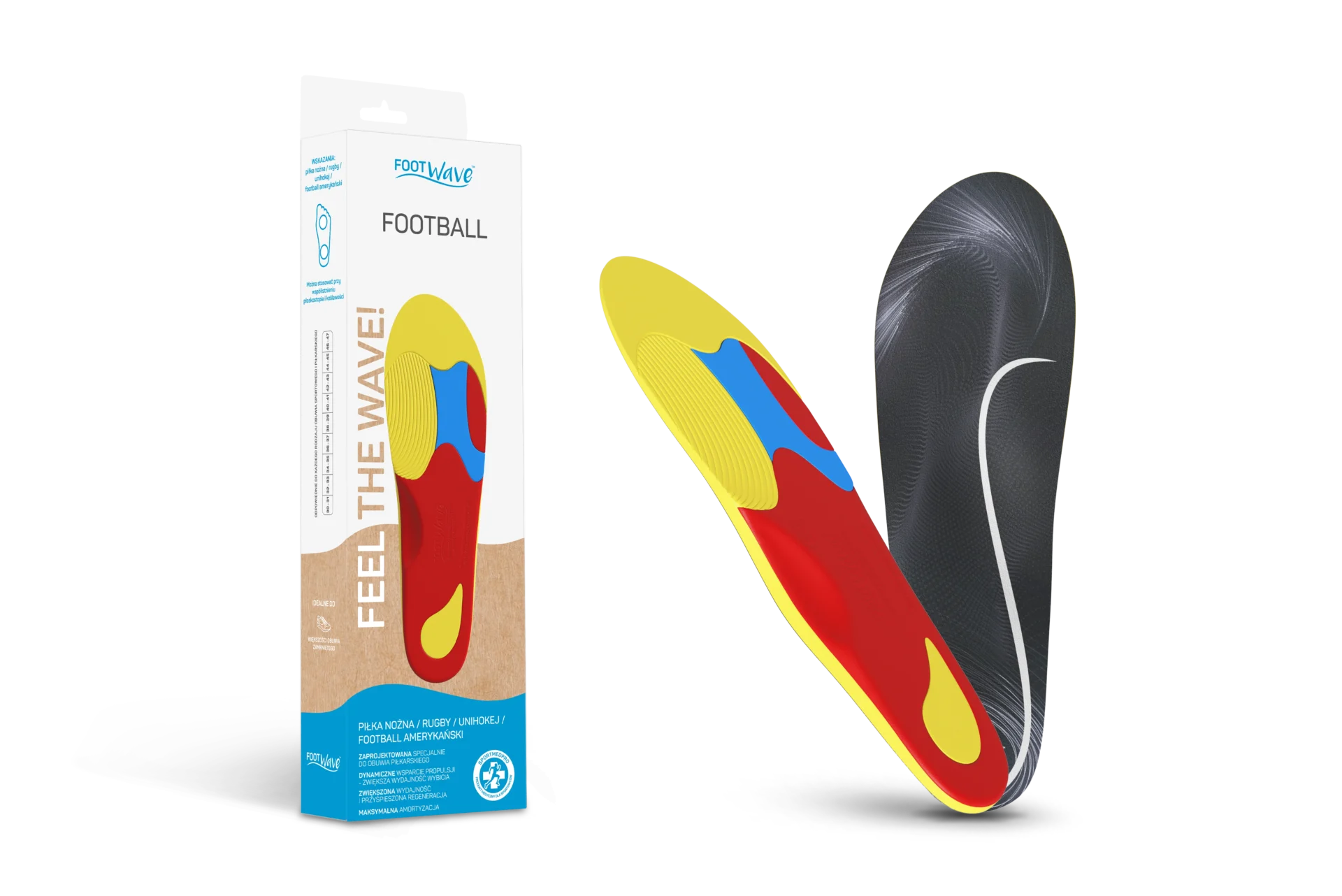 Jeśli jesteś osobą aktywną fizycznie, to mamy dla Ciebie absolutną NOWOŚĆ! FootWave FOOTBALL to wkładki ortopedyczne dla piłkarzy oraz sportów pochodnych, jak futbol amerykański, rugby, czy unihokej. Wkładki z możliwością przycięcia.