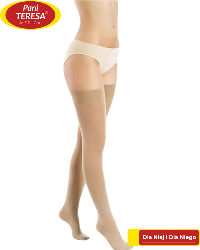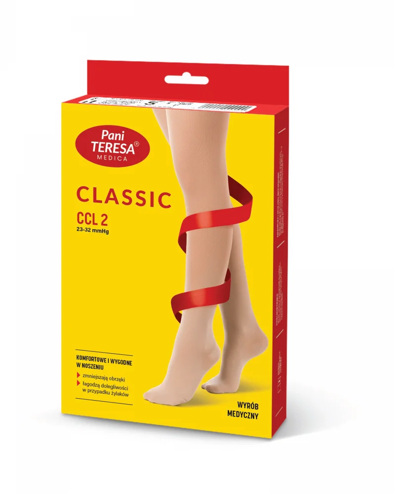 Pończochy uciskowe CLASSIC CCL2 od Pani Teresa Medica to doskonałe rozwiązanie dla osób poszukujących niezawodnego wsparcia w terapii przewlekłej niewydolności żylnej. Dzięki kompresji II klasy (CCL2), zapewniają odpowiedni stopień ucisku, wspomagając prawidłowe krążenie krwi i zmniejszając obrzęki nóg.