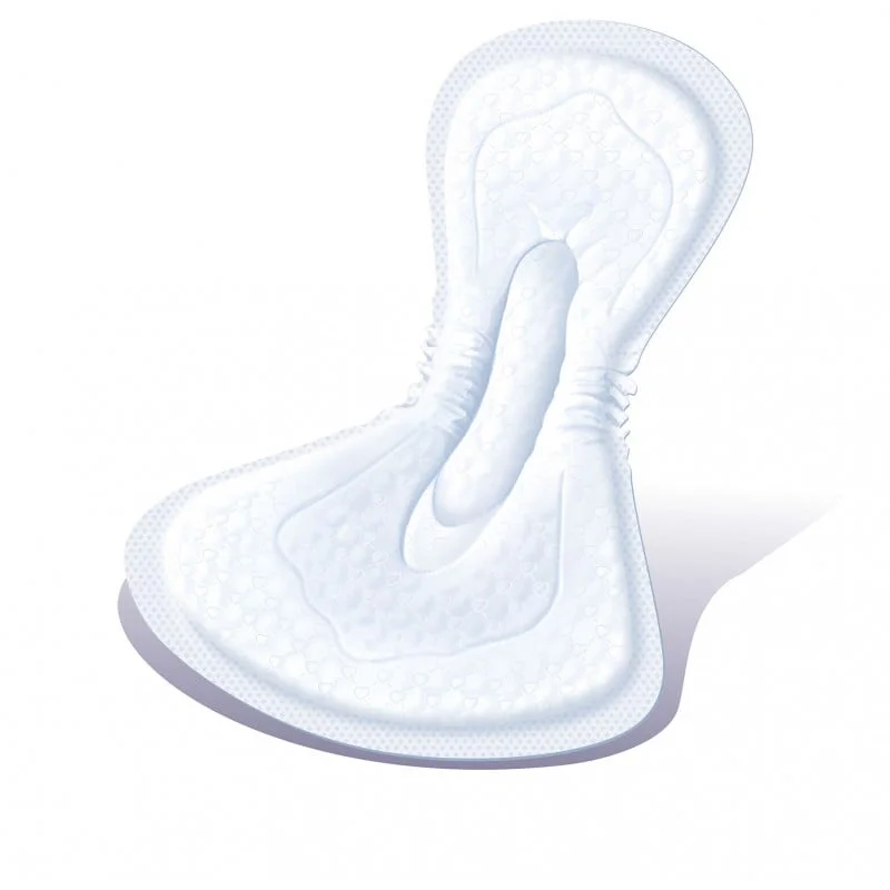Unikalny wzór wycisku w środkowej części wkładki tworzy system kanalików, które pozwalają na błyskawiczną dystrybucję cieczy we wkładzie chłonnym. Boki wkładki i elastyczne tasiemki w części krokowej zapobiegają przeciekaniu moczu.