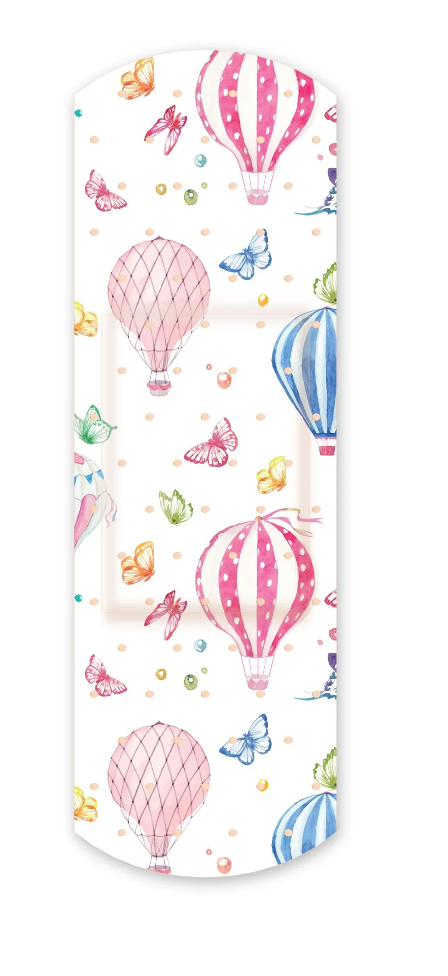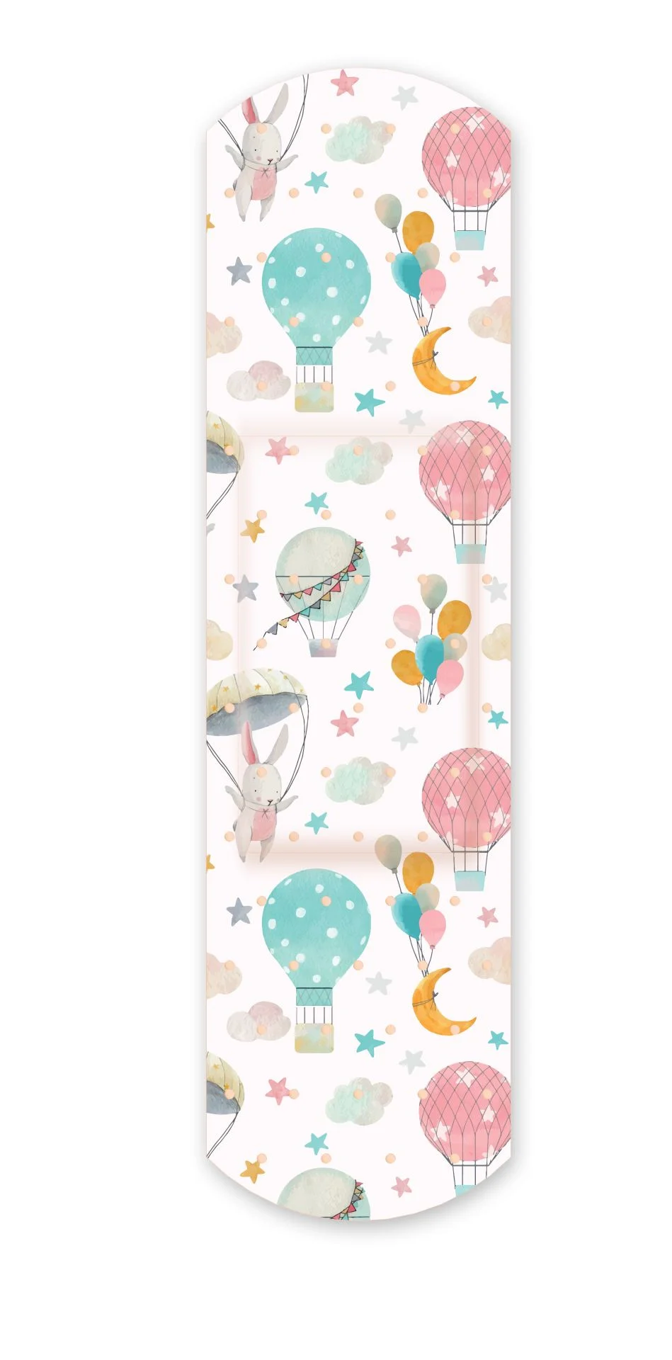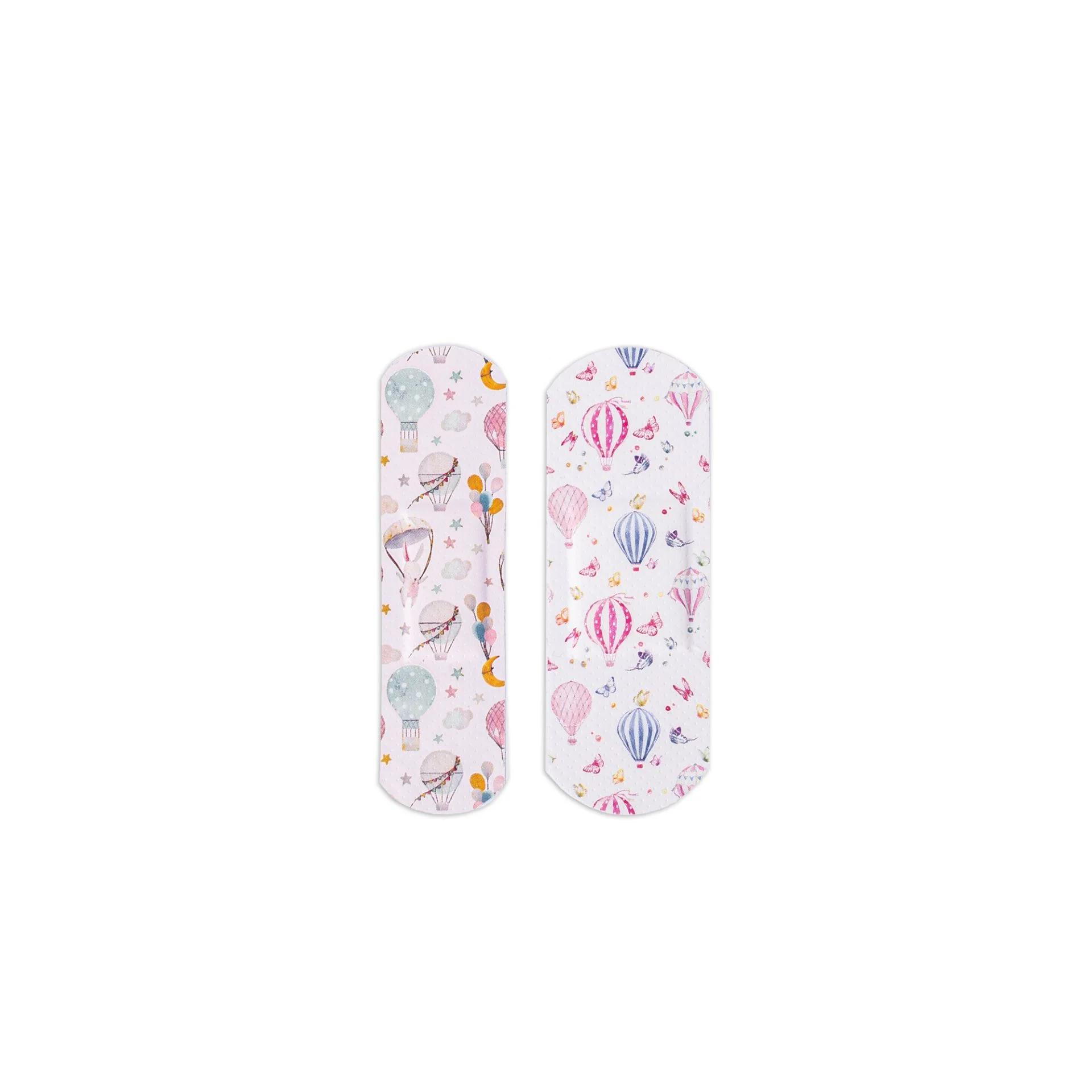 Plastry z nieprzywierającym wkładem chłonnym, z kolorowym nadrukiem, przyjazne dla skór podatnych na uczulenia.